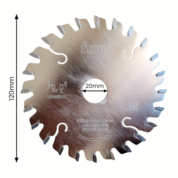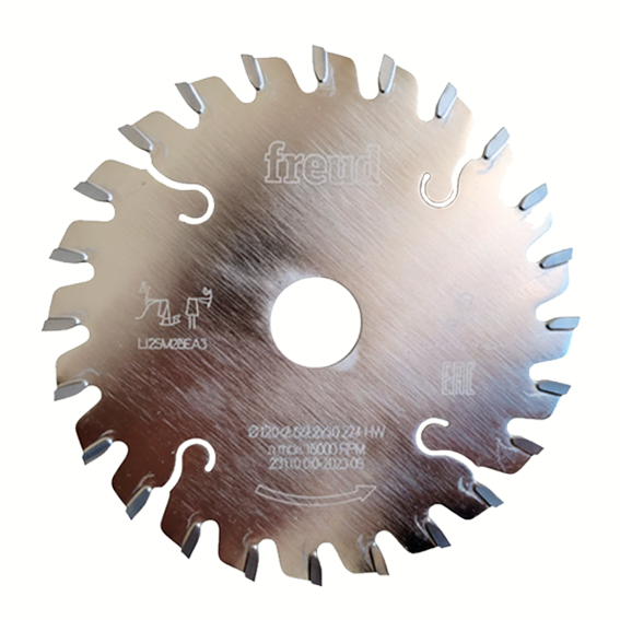 Este disco incisor de 120 mm de diámetro con cenador de 20 mm es ideal para escuadradoras, permitiendo cortes precisos y sin astillas en materiales laminados y maderas. Diseñado con 24 dientes de perfil ATB (diente alterno inclinado) y un ángulo de corte positivo de 6°, su ángulo de gancho de 0° y su afilado cónico ofrecen una calidad de corte sobresaliente en materiales sensibles al astillado. Su grosor de corte ajustable, entre 2.8 mm y 4 mm, junto con una placa de 2.2 mm, garantiza versatilidad en distintas aplicaciones de corte.