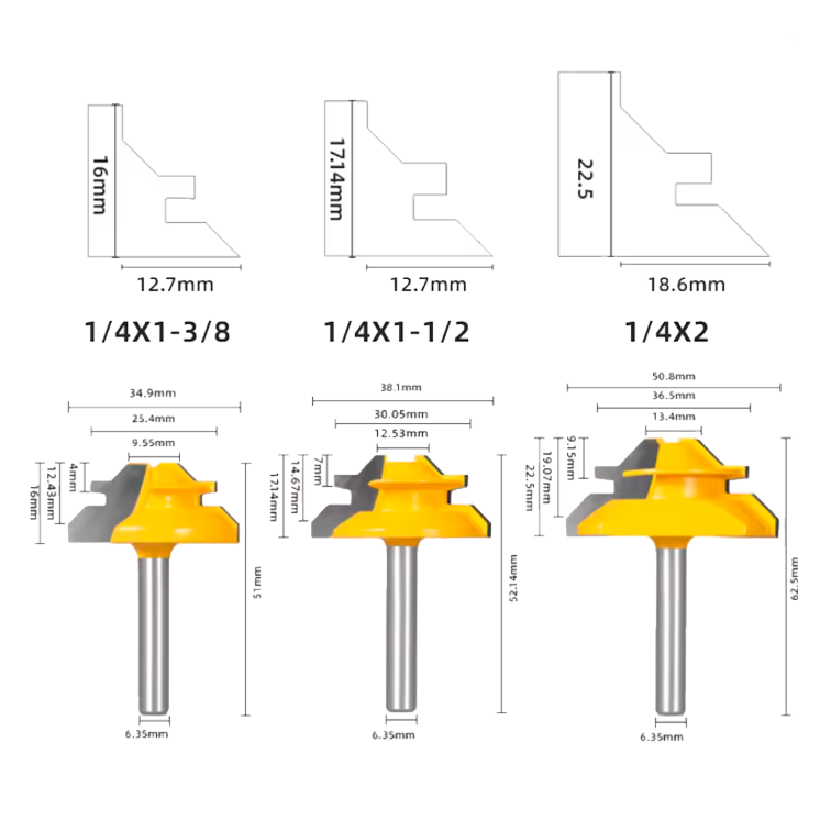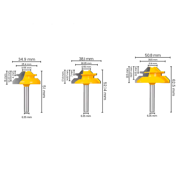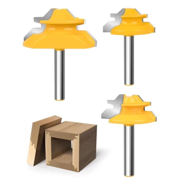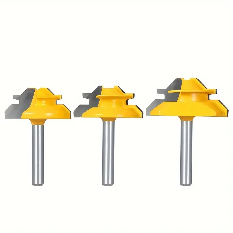 El juego de brocas para uniones a 45 grados está diseñado para crear uniones entrelazadas precisas y resistentes, ideal para trabajos de carpintería que requieren ensamblaje de tablas a 45 grados. Con carburo C3 de alta calidad, estas brocas ofrecen durabilidad y un acabado suave, además de incluir tres tamaños diferentes para adaptarse a una amplia gama de grosores de material.