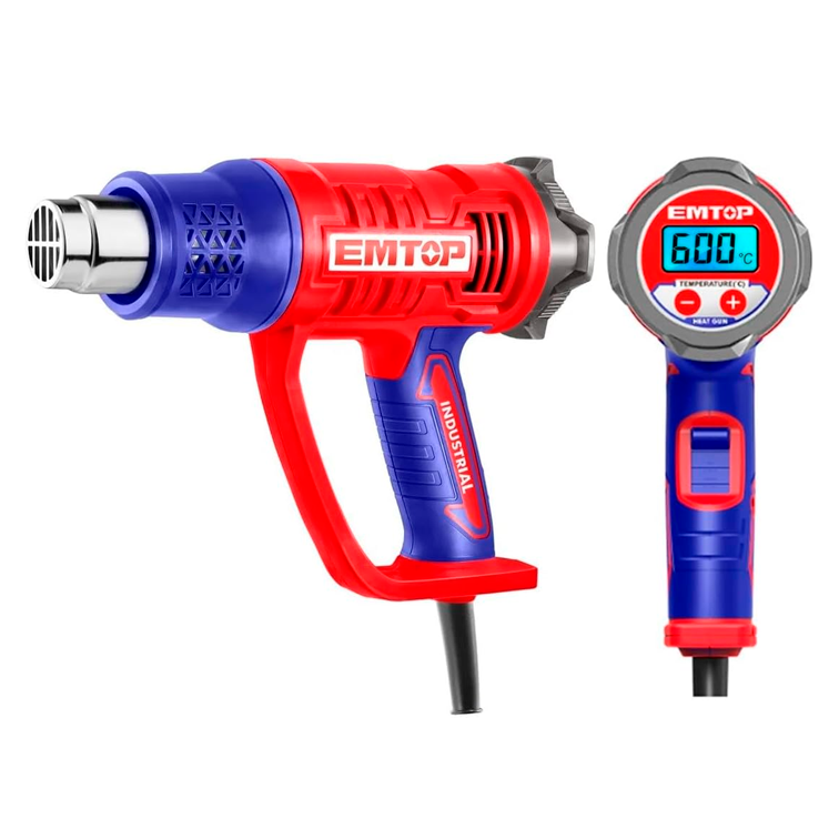 La pistola de calor EMTOP ULHGN16056 es una herramienta de uso industrial diseñada para trabajos que requieren un control preciso de la temperatura y el flujo de aire. Gracias a su pantalla LCD integrada, permite monitorear y ajustar el calor en tiempo real, lo que la hace ideal para tareas delicadas como el decapado de pintura, el termoencogimiento de tuberías o el secado de materiales sin riesgo de sobrecalentamiento.