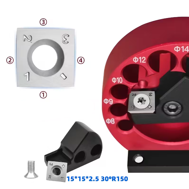 El mecanismo de corte central utiliza una cuchilla de carburo indexable que es extremadamente afilada y resistente al desgaste, permitiendo cortar maderas duras y blandas con facilidad y dejando un acabado liso y preciso. El uso de cuchillas indexables significa que, una vez que un lado se desafila, la cuchilla se puede rotar o reemplazar rápidamente, maximizando la vida útil de la herramienta y manteniendo la calidad del corte. Es la solución ideal para producir grandes cantidades de tarugos de forma eficiente y con resultados profesionales.