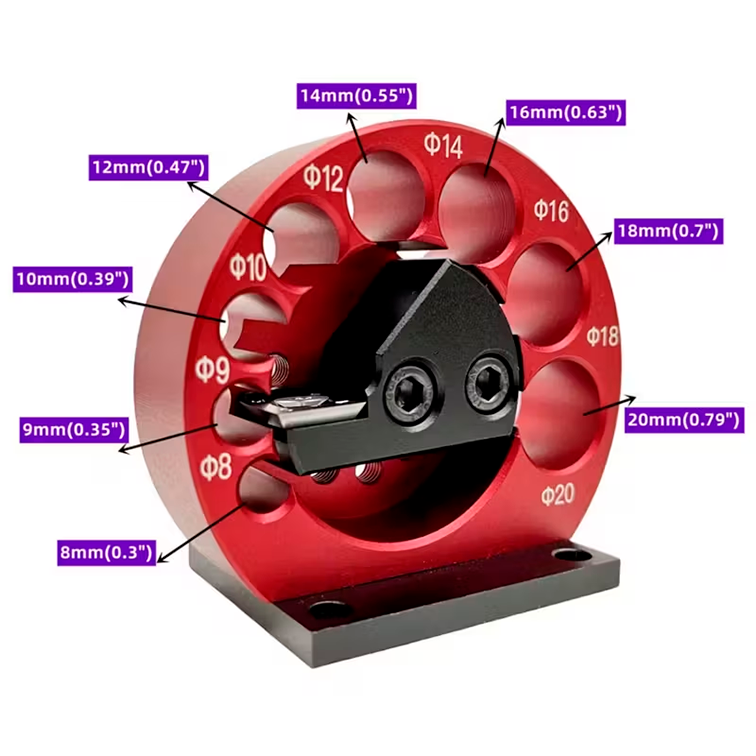 • Múltiples Diámetros: La rueda con varios orificios cubre un amplio rango de tamaños estándar, eliminando la necesidad de múltiples herramientas.