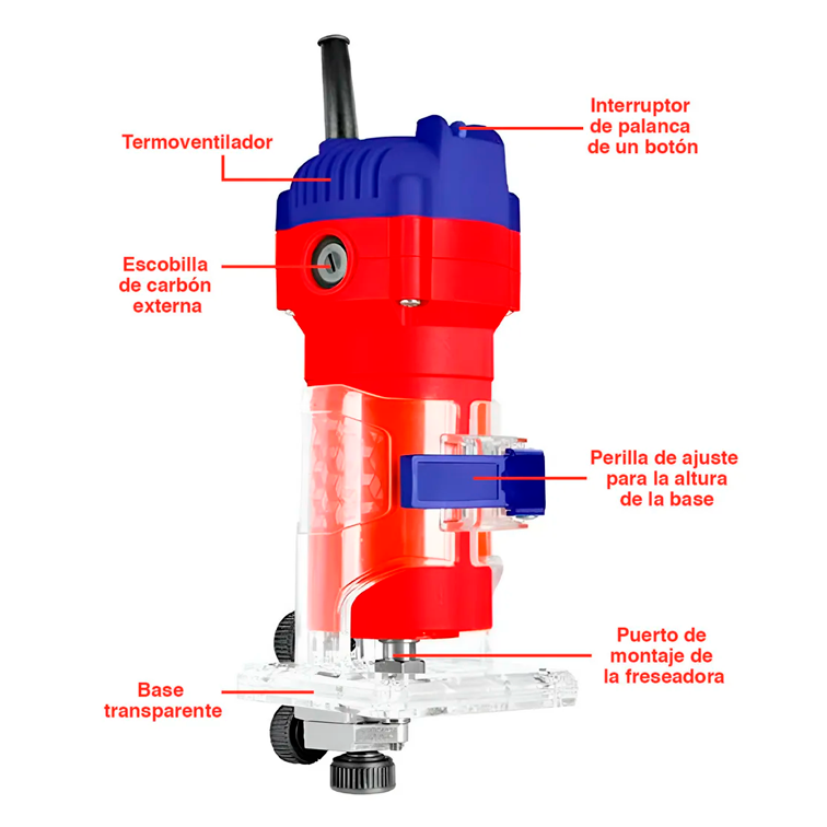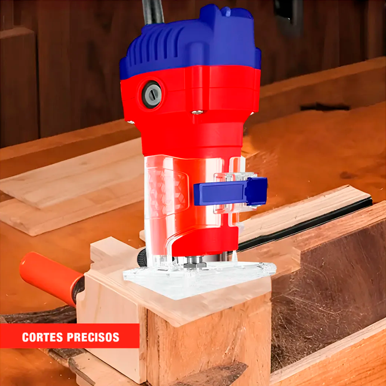 Este modelo destaca por su motor de 600W, que proporciona una velocidad constante de 34500 rpm, permitiendo cortes limpios y profesionales sin esfuerzo. Su diseño ergonómico facilita el manejo con una sola mano, lo que la convierte en una herramienta versátil tanto para aficionados al bricolaje como para carpinteros profesionales. Además, cuenta con una base transparente que ofrece una visibilidad clara de la línea de corte en todo momento.