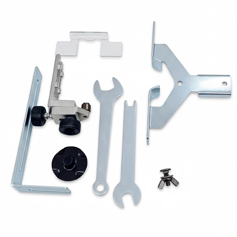 1 Guía de riel horizontal y 1 guía lineal. 1 Juego de componentes de rodillo. 2 Llaves para cambio de fresas. 1 Juego de escobillas de carbón adicionales. |