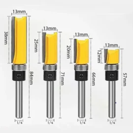 Fresa corte recto set x 4 con rodamientos superiores vástago 1/4″